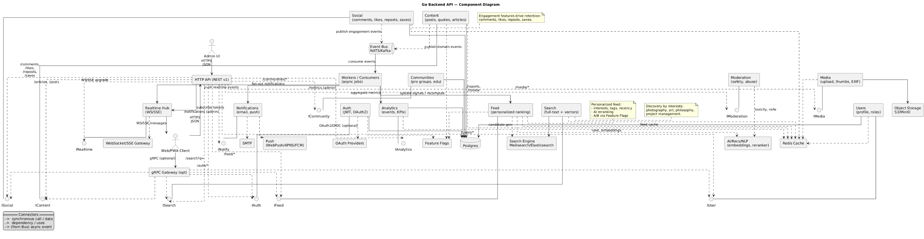 Возможность общения между пользователями (комментарии, лайки, репосты).